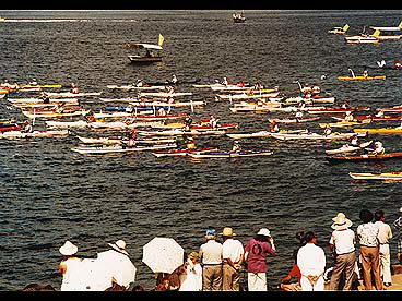 ■シーカヤック200艇の参加によるマラソン競技大会を中心としたマリンスポーツ交流事業、並びに郷土芸能等による文化交流事業。